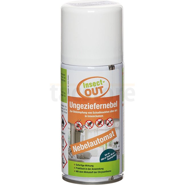 Insect-OUT est un puissant brouillard de lutte contre les nuisibles de 150 ml qui cible efficacement tous les types de nuisibles à l'intérieur, couvrant des zones allant jusqu'à 300 m². Avec des ingrédients actifs comme le Prallethrine et l'extrait de Pyr