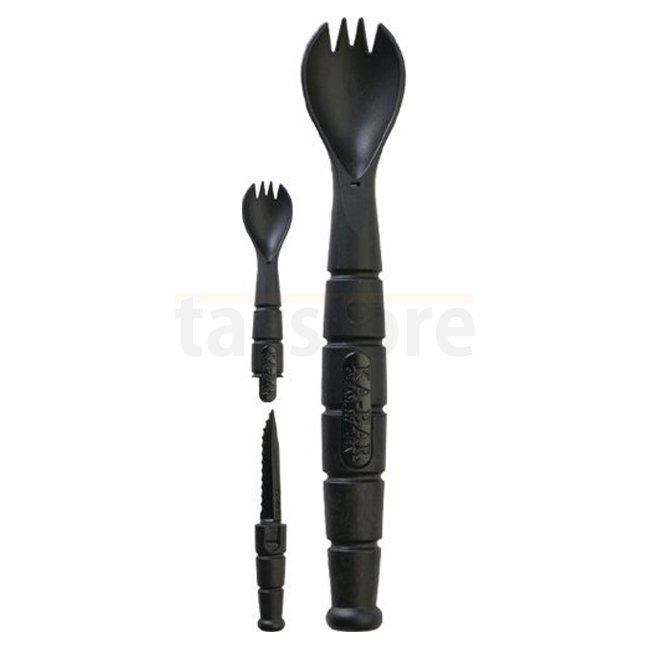 Le Field Kit Spork Set est parfait pour le camping, la randonnée, les pique-niques, le stockage dans des boîtes à gants et des sacs à dos, et pour manger sur le pouce. Fabriquées à partir de Creamid sans danger pour les aliments et l'eau, les Sporks passent au lave-vaisselle. Les Sporks comportent une combinaison cuillère/fourchette à la base et un couteau dentelé à l'intérieur. Le couteau est accessible en tirant sur les deux extrémités de la Spork. La longueur totale de chaque spork est de 6.875" / 175 mm. La longueur de la lame du couteau est de 2.5" / 63.5 mm. Fabriqué aux Etats-Unis. |