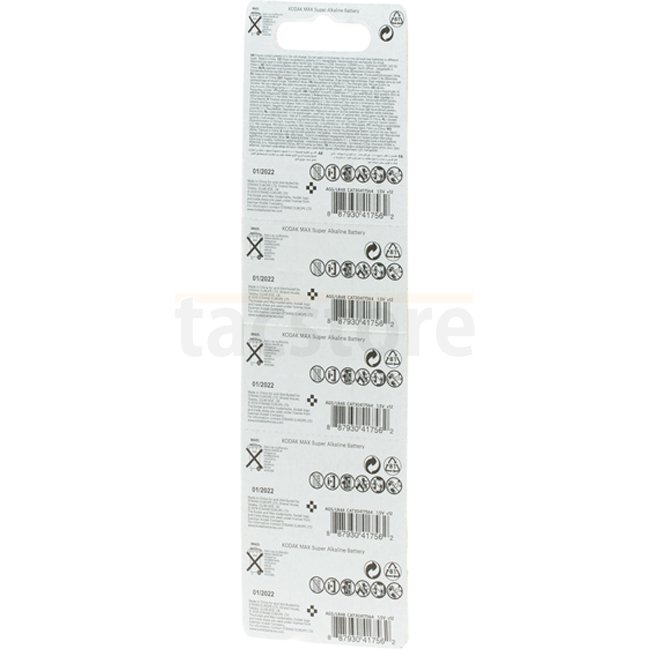 Kodak LR48 / AG5 10pcs - Lot de 10 piles alcalines LR48 / AG5 de Kodak, conçues pour fournir une puissance durable pour divers appareils.