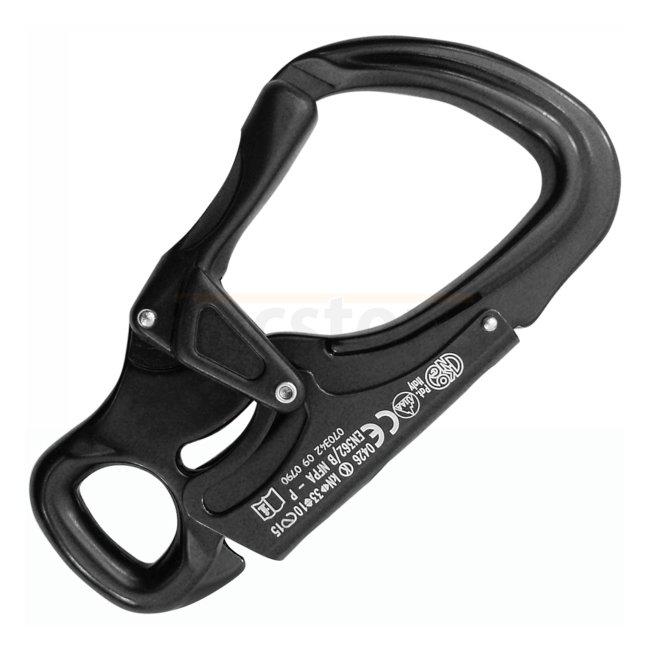 Mousqueton aluminium avec double doigt de sécurité. Pour ouvrir le mousqueton, il faut appuyer avec le paume sur le doigt arrière et en même temps tirer le doigt avant. Le doigt arrière est protégé de sorte à éviter les ouvertures accidentelles dues à l’écrasement du mousqueton contre le corps ou la paroi. Idéal pour créer des sets de via ferrata et longes de sécurité. Spécifique pour des utilisations en via ferrata et parcs d'aventure.