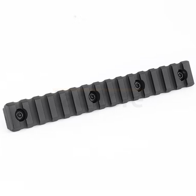 KRUK 15 emplacements Rail Picatinny M-LOK - Noir est un système de rail polyvalent conçu pour attacher des accessoires à votre arme à feu. Avec 15 emplacements, il offre un espace ample pour la personnalisation, tandis que sa compatibilité M-LOK assure un