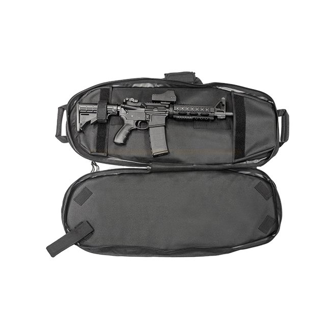 Leapers Alpha Battle Carrier - Noir. Nylon 1200D, convient pour AR-15 de 16". Dimensions : 38,1 x 90,2 cm. Poids : 1,95 kg.