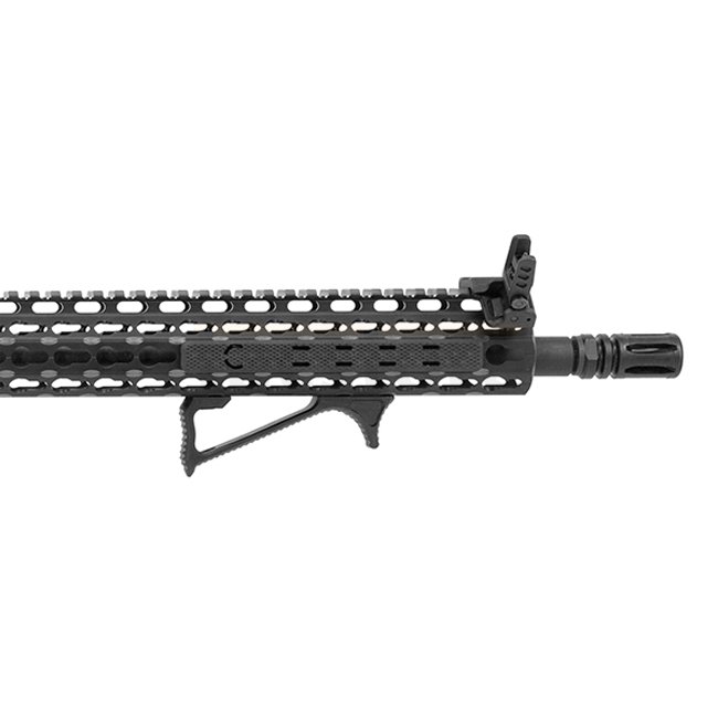Améliorez l'ergonomie de votre fusil avec la poignée avant inclinée ultra mince Leapers Keymod en finition noire élégante. Fabriquée en aluminium léger 6061-T6, mesurant 99,1 x 38,1 mm et pesant seulement 36,9 g.