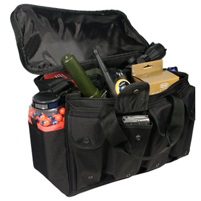 Sac de Tireur Tactique Leapers léger et durable en couleur noire élégante, fabriqué à partir de matériel polyester de haute qualité. Dimensions : 38 x 30 x 28cm. Parfait pour tous vos essentiels de tir. Pèse 1360g.