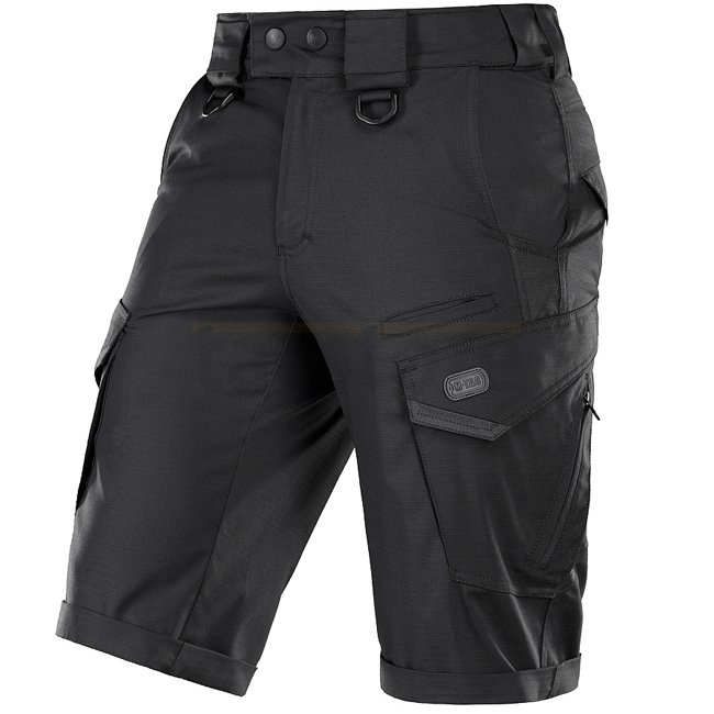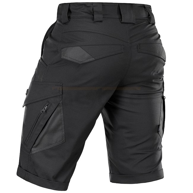 Shorts M-Tac Aggressor Flex Gen.II - Noir - 3XL. Convient pour l'entraînement, le tir, le travail, les voyages et les promenades. Matière légère, imprégnée de Téflon pour la protection contre l'eau et la saleté. Confortables, élégants, avec des poches lar