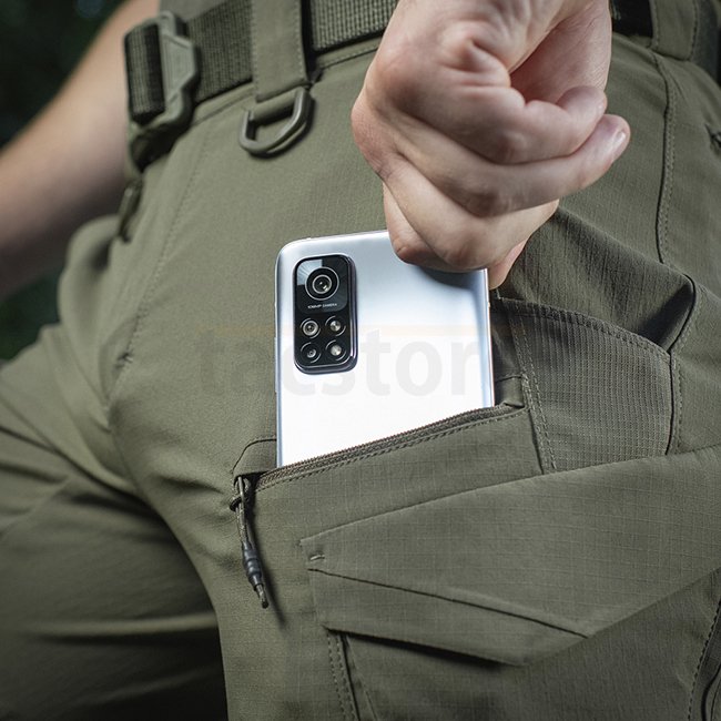 Des poches pratiques et larges avec des inserts renforcés contiendront le minimum d'articles nécessaires. Des accessoires YKK de haute qualité ont été utilisés. Le pantalon a également une sangle élastique "tunnel" avec un ajustement pratique et est conçu pour être porté avec une ceinture jusqu'à 5.5cm de large. Sur le devant, il y a deux anneaux en D pour accrocher divers équipements. Le bas du pantalon est réglable en largeur grâce à un cordon élastique et velcro.