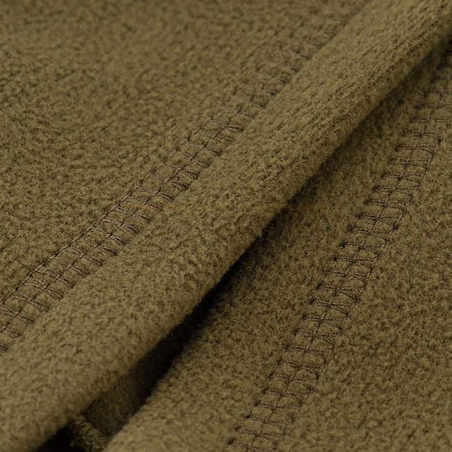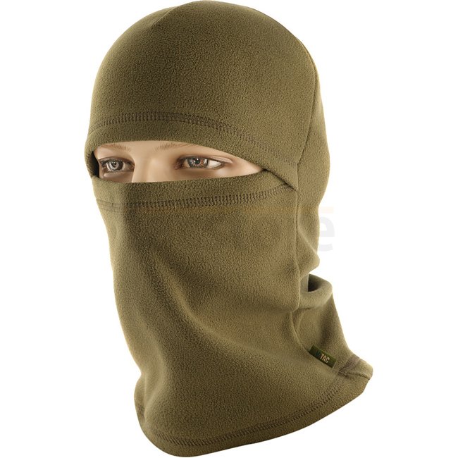 Cagoule en polaire olive pour temps frais. Ajustement serré autour du visage et du cou. Utilisation polyvalente comme cagoule, masque, écharpe ou bonnet. Matériau : 100% polyester.