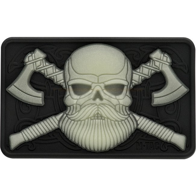 M-Tac Bearded Skull 3D Rubber Patch - Glow in the Dark