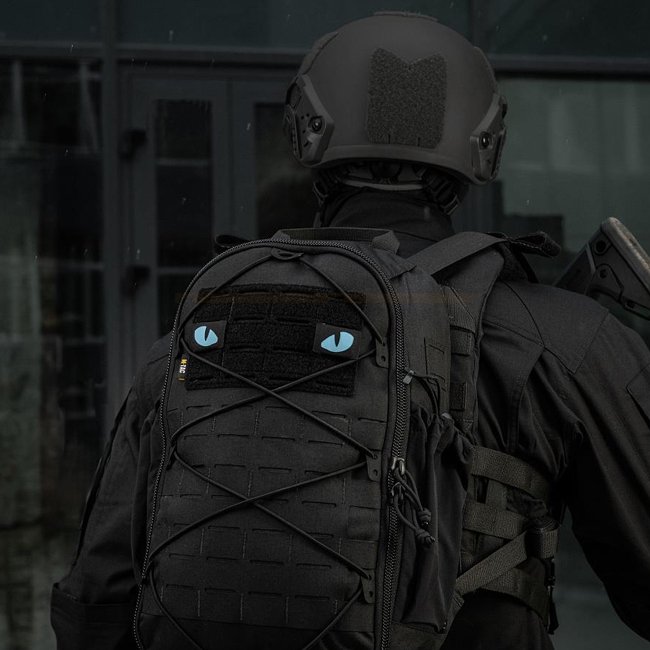 Patch découpé au laser "Yeux de Tigre Bleu" M-Tac - Noir. Avant en Cordura 500D, dos avec surface adhésive. Taille 40x25mm. Design accrocheur.
