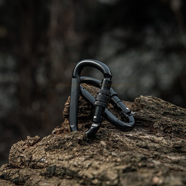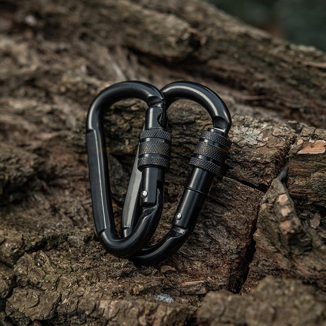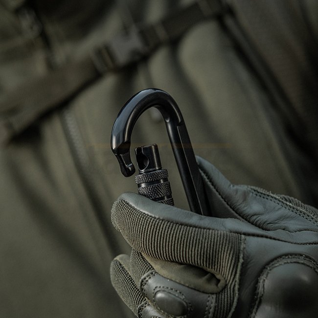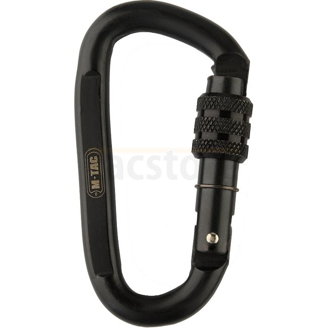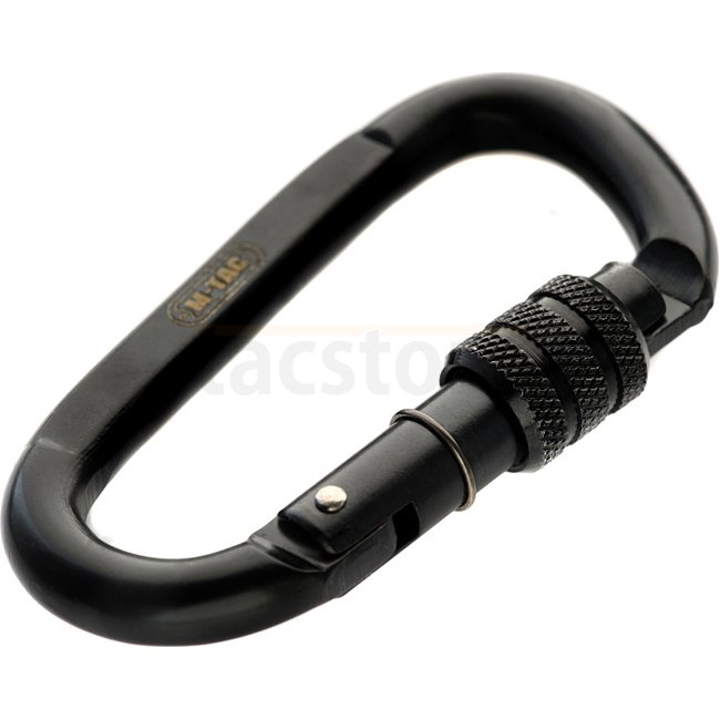 M-Tac Mousqueton 10 cm - Noir, fabriqué en acier allié 40Cr, avec une charge longitudinale de 27 kN et une charge rupture de 2200 kg. Pas destiné à l'escalade et aux opérations de sauvetage !