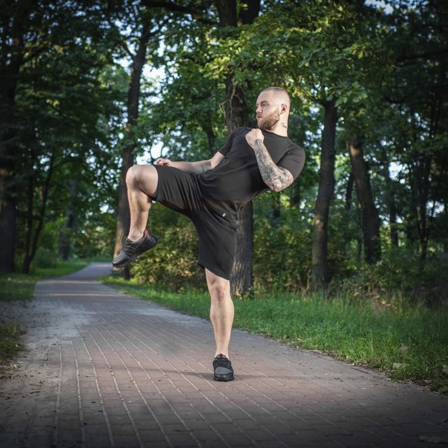 Cousu en 100% coton, qui ne transpire pas et garantit un confort d'utilisation. Une bande élastique confortable fixe bien le short à la taille. En raison de la coupe parfaite, ils ne limitent pas les mouvements et assurent un confort lors de l'activité physique. Deux poches latérales avec une forme originale garantissent un accès rapide aux choses les plus nécessaires.
