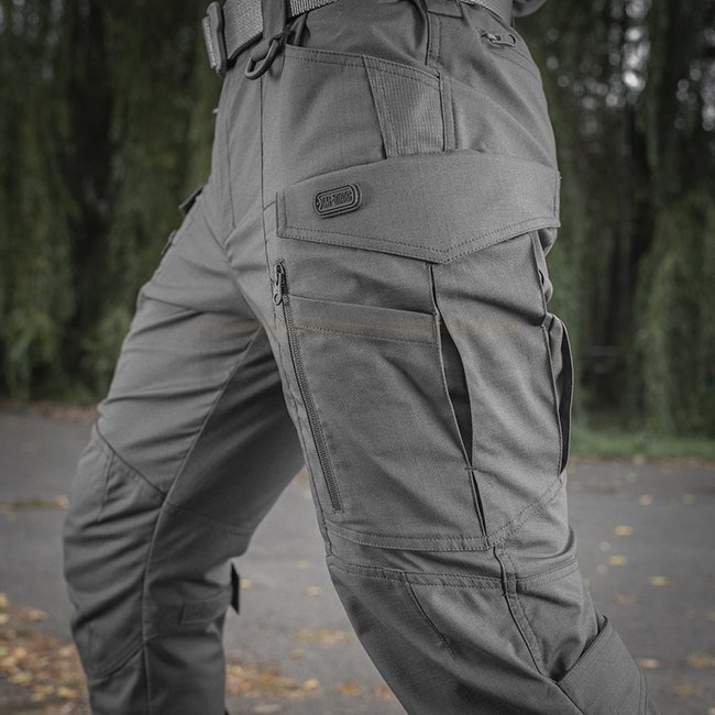 Les caractéristiques de conception du pantalon Conquistador Flex sont un insert élastique à la taille et près des poches latérales, grâce auquel le pantalon ne vous limite pas lorsque vous vous penchez ou vous penchez. Ils n'entravent pas la liberté de mouvement et vous pouvez les porter aussi bien comme vêtements tactiques que comme vêtements de tous les jours. Le pantalon a une fermeture éclair et un bouton, il est également équipé de passants pour une ceinture jusqu'à 5,5 cm de large. Deux anneaux en D sont cousus à l'avant pour attacher divers équipements. Le pantalon Conquistador Flex est équipé d'un grand nombre de poches, à la fois utilitaires et spéciales : il y a huit poches au total. Les poches latérales standard sont équipées d'un renfort en bas - pour attacher un clip de couteau ou une lampe de poche au bord de la poche. La poche cargo complexe est équipée d'une poche plaquée supplémentaire, qui peut accueillir un chargeur M4 ou AK. La poche cargo elle-même est assez spacieuse. Il a deux plis, grâce auxquels sa taille peut être augmentée pour transporter des objets volumineux. La poche cargo est fermée par un rabat velcro asymétrique à ouverture rapide. De plus, la poche cargo est équipée d'une deuxième entrée zippée, ce qui vous permet d'accéder à son contenu depuis une position assise.