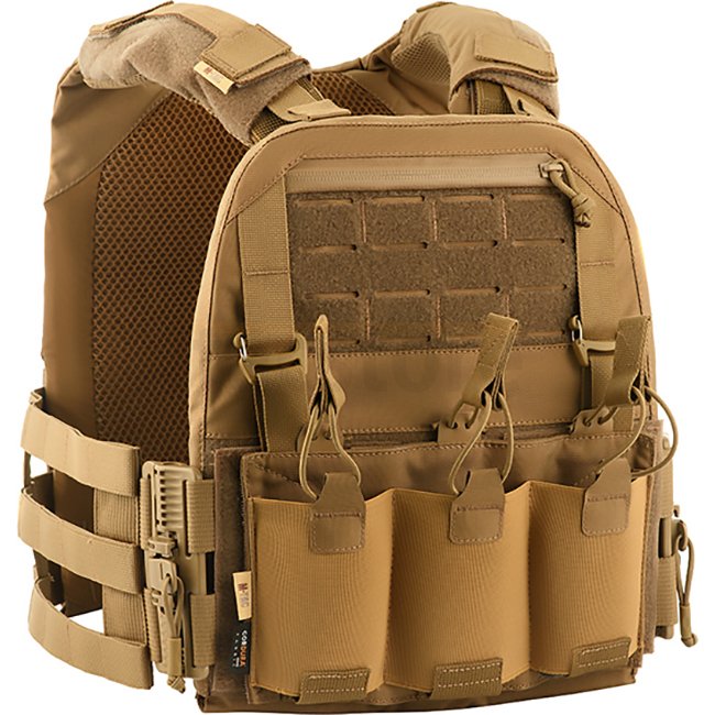M-Tac Cuirasse Porte-Plaque QRS - Coyote : Porte-plaque évolutif avec système de libération rapide, poches modulaires et matériaux Cordura. Compatible avec les tailles Medium SAPI & ESAPI.