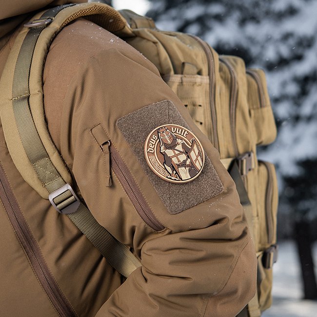 M-Tac Deus Vult Patch en caoutchouc 3D - Coyote. Avant : Caoutchouc, Arrière : Surface à crochet. Taille : 80x80 mm.