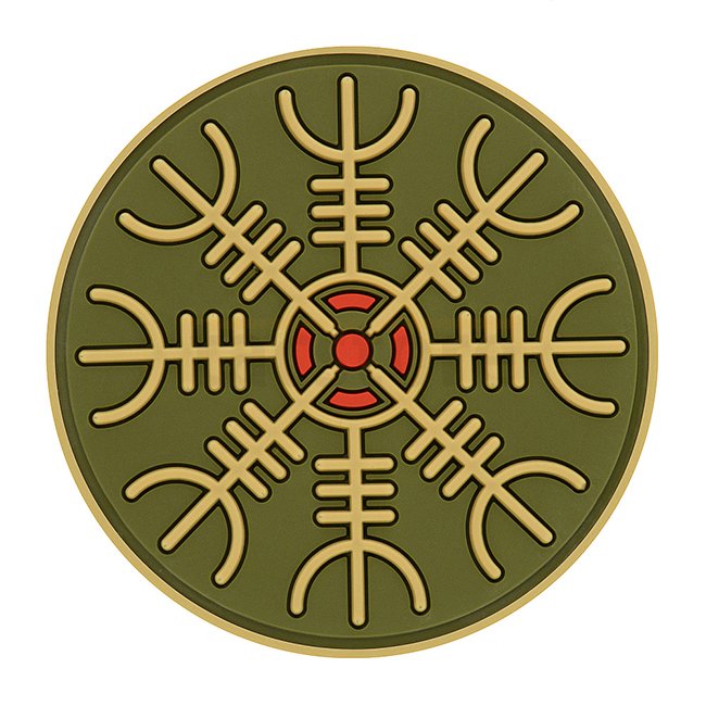 Patch en caoutchouc M-Tac Egeshelm de couleur olive, composé d'une face avant en caoutchouc et d'une face arrière dotée d'une surface à crochet. Dimensions 55 x 55 mm.