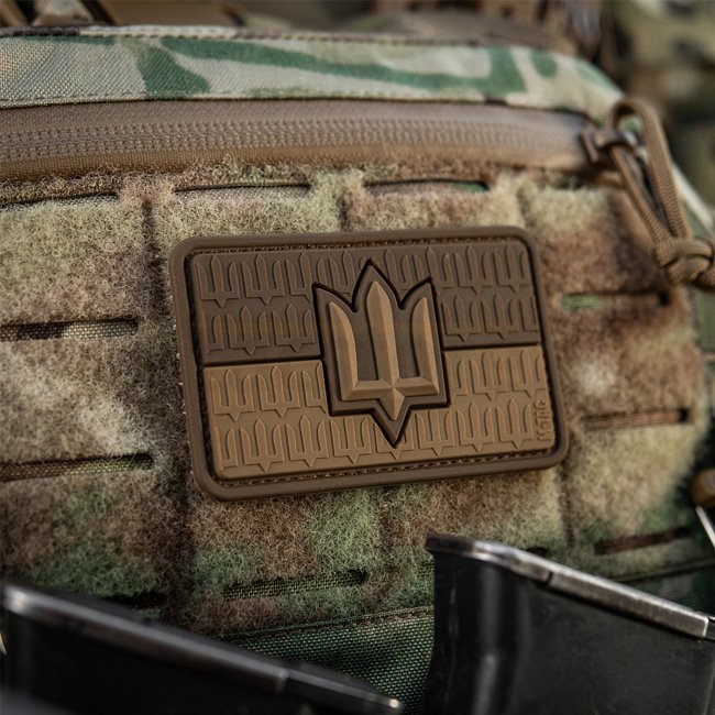 M-Tac Drapeau de l'Ukraine & Trident des Forces Armées Patch en caoutchouc - Coyote. Devant en PVC, dos avec surface à crochet, 80 x 50 mm.