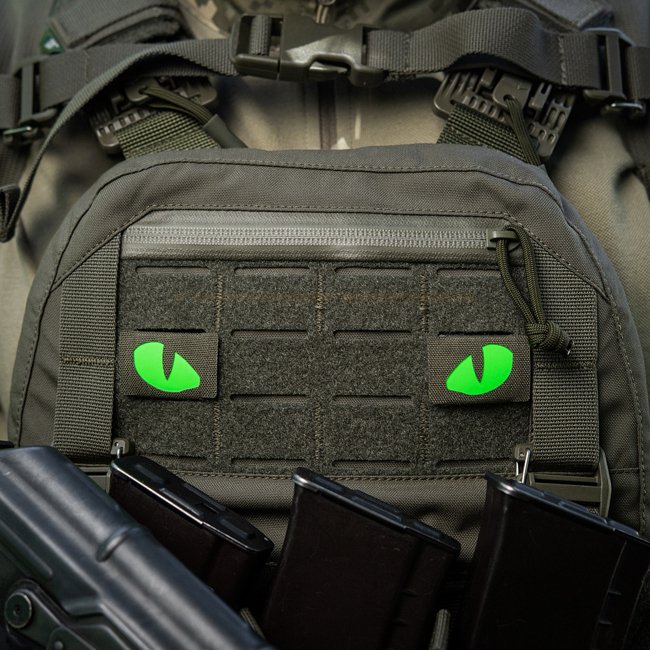 Écusson découpé au laser M-Tac Yeux de Tigre Vert - Vert Ranger. Avant : Cordura 500D, Arrière : surface à crochets. Dimensions : 40x25mm.