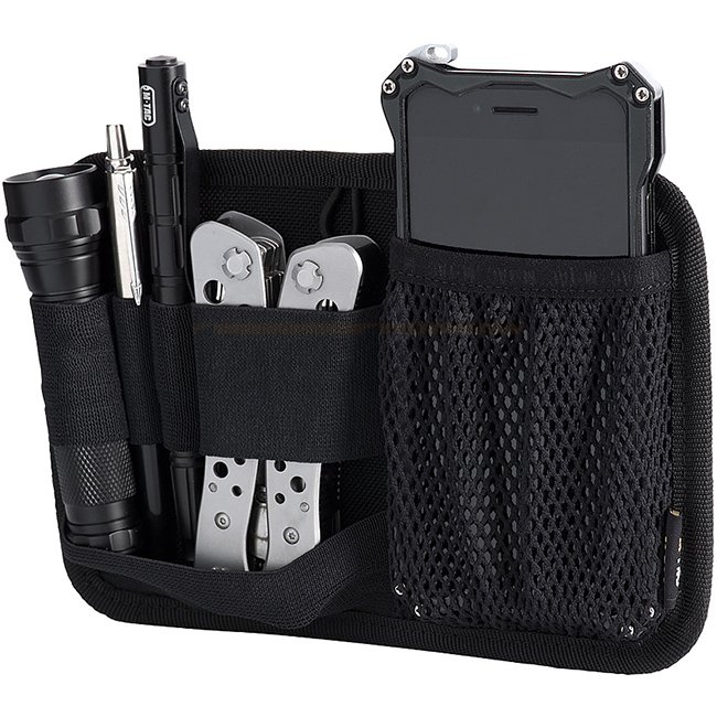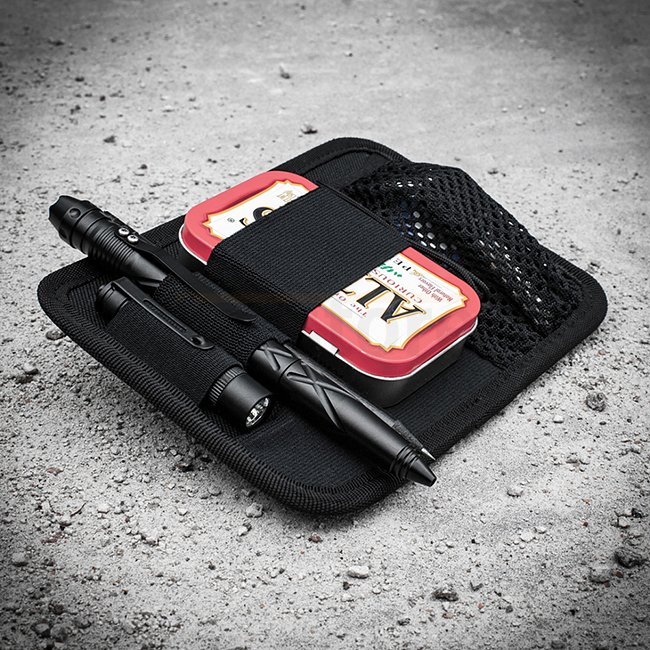 Un organisateur modulaire qui peut être attaché dans un sac ou un sac à dos à l'aide d'une surface en velcro ou en velours. Aide à organiser l'espace dans votre sac de tous les jours afin que tous les éléments essentiels soient à portée de main. Des attaches élastiques pour stylo tactique, lampe de poche, porte-clés, multitool, couteau, téléphone et autres gadgets utiles vous seront utiles pour transporter votre kit EDC. Le module est également équipé d'un porte-clés.