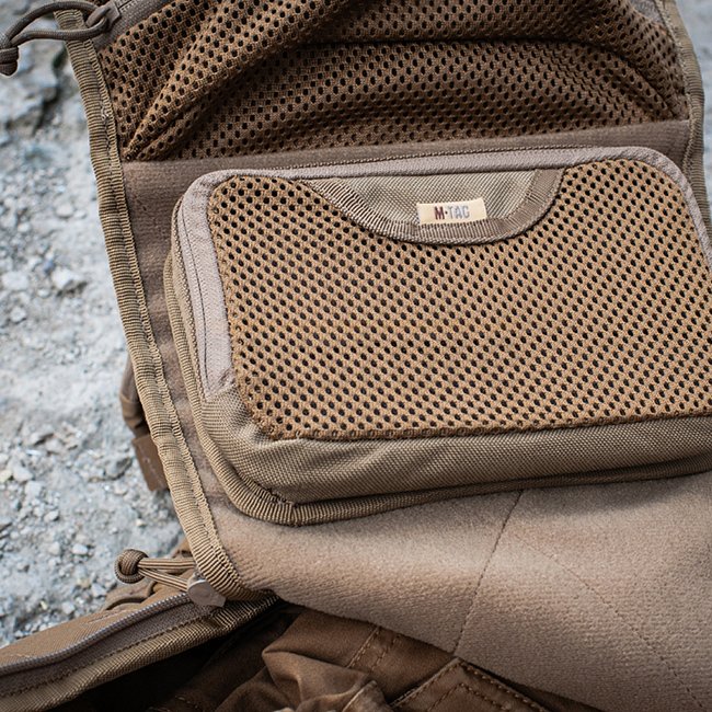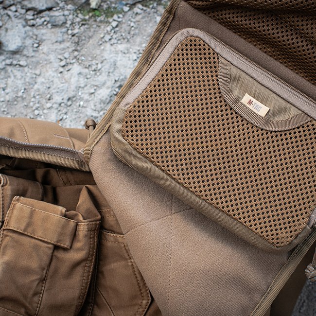 Ce panneau utilitaire M-Tac Hook & Loop - Coyote est l'accessoire parfait pour votre sac ou sac à dos, offrant une poche en maille zippée sécurisée pour organiser les petits objets.