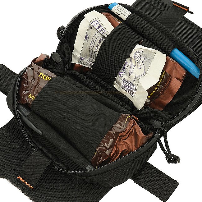 La base du kit est en Cordura laminé utilisant la technologie Laser Cut. L'identification de l'organisateur médical est fournie en deux couleurs - le rouge, qui est traditionnel pour les trousses de premiers secours, ou le noir, pour le rendre moins visible. Livré sans contenu affiché.