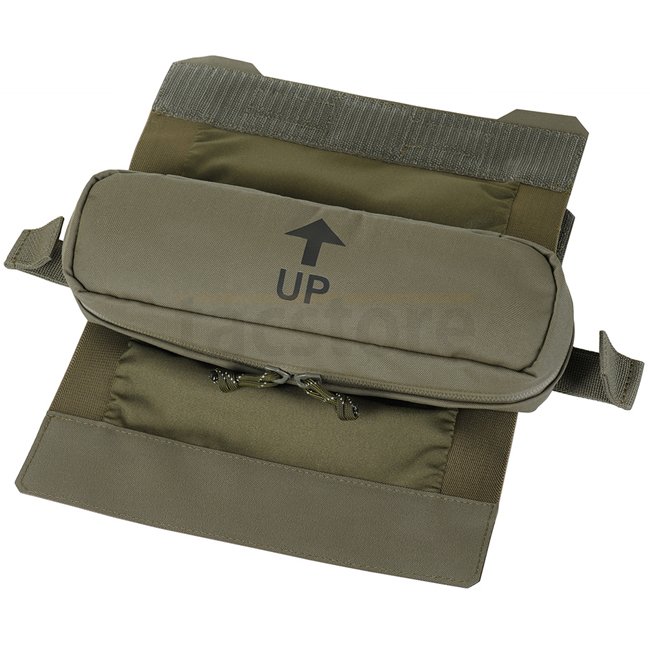 La pochette médicale s'installe dans la poche de la partie arrière du porte-plaque. Une couche de Velcro amovible supplémentaire sur le rabat de la pochette aidera à l'intégrer dans n'importe quel porte-plaque où la partie inférieure de la poche arrière se ferme avec du Velcro, peu importe si la partie crochet ou boucle est nécessaire.