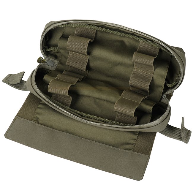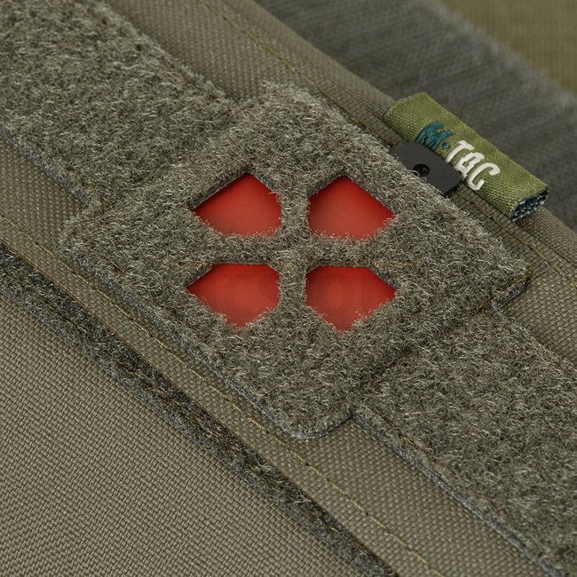 Ce rouleau est composé de deux parties: une housse extérieure et la pochette interne IFAK (Individual First Aid Kit). Le couvercle extérieur est réglable en volume et offre un accès bidirectionnel ouvert. En tirant sur la sangle, il peut être rapidement retiré. La pochette est reliée à la housse au moyen de velcro pour éviter toute perte accidentelle. À l'intérieur de la pochette se trouve un organisateur composé d'élastiques pour attacher des fournitures médicales (non incluses). Le rabat avant de la pochette est muni d'un identifiant bicolore.