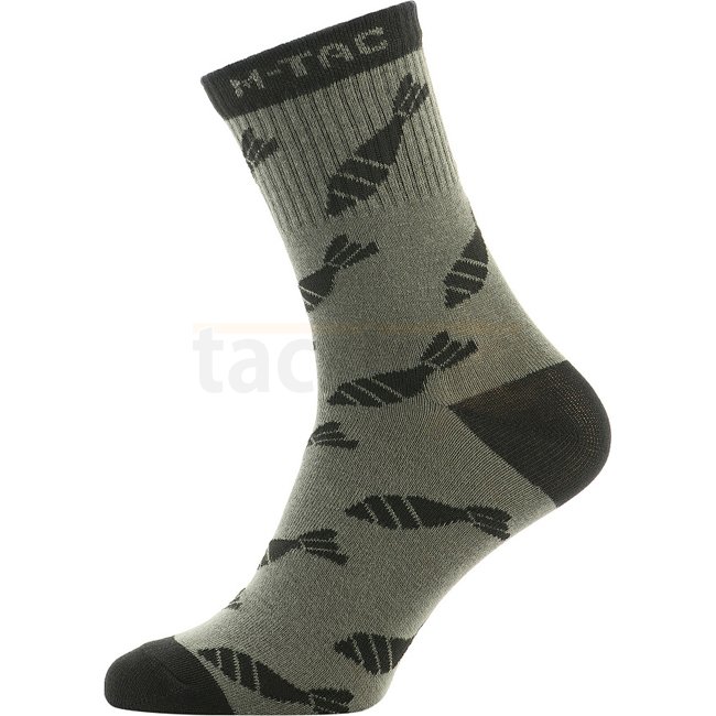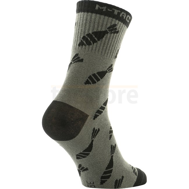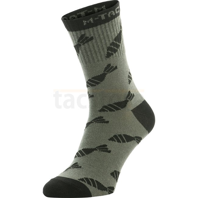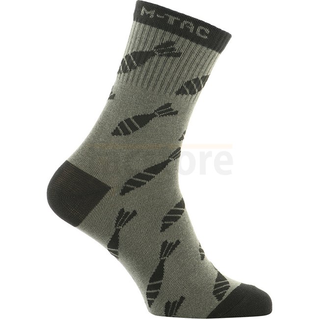 Chaussettes légères M-Tac Mortar Bombs Mk.3 - Olive - 43-46 : Chaussettes légères et respirantes avec une thermorégulation optimale, bande élastique serrée, motif original, forme anatomique pour le confort, idéales pour les saisons chaudes.
