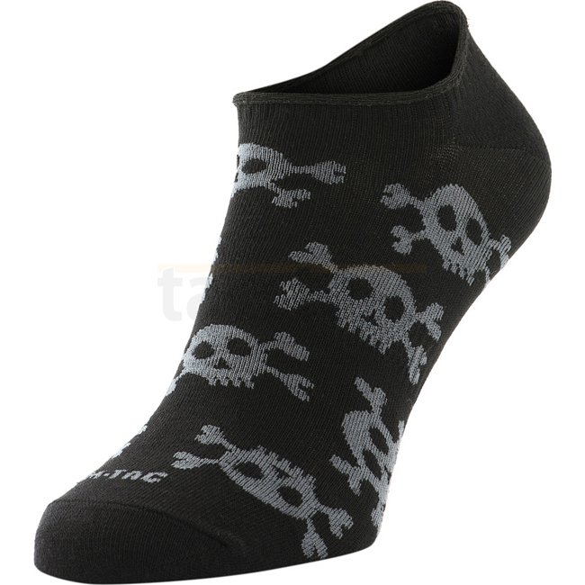 Chaussettes d'été légères M-Tac Pirate Skull en noir, taille 43-46. Fabriquées en matériau léger et respirant pour une thermorégulation optimale. Design unique avec des points de pression ergonomiquement placés pour un ajustement optimal. Ventilation parf
