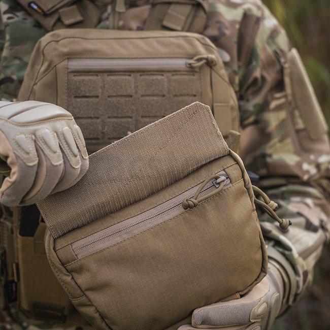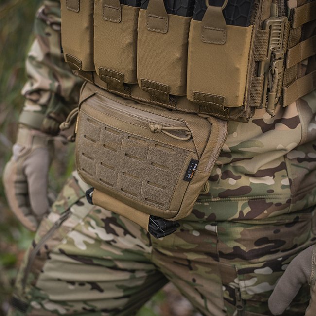 Poche accessoire inférieure pratique grande élite, fabriquée en Cordura 500D durable. Parfait pour transporter un insert de protection souple, un garrot et de petits équipements.