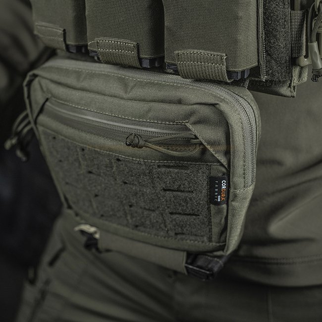 Accessoirisez votre tenue avec la pochette pour accessoires inférieurs M-Tac Large Elite en vert Ranger. Fabriquée en Cordura 500D durable, cette pochette peut contenir un insert de protection souple, un garrot et de petits équipements facilement. Parfait