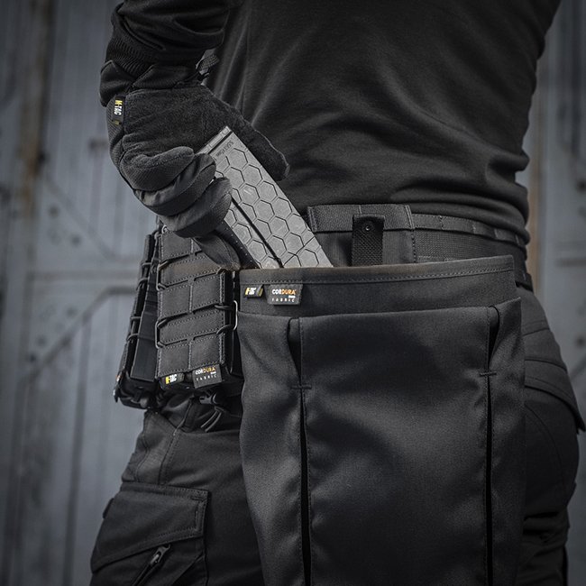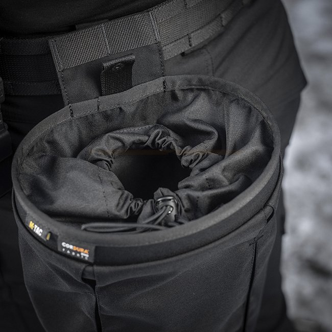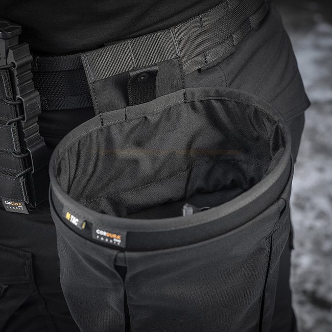 Le M-Tac Magazine Dump Pouch Lite Elite en noir est conçu pour un remplacement rapide et facile des chargeurs dans des scénarios à haute tension. Il présente un design spécial pour empêcher les objets de tomber et un système de libération rapide pour une