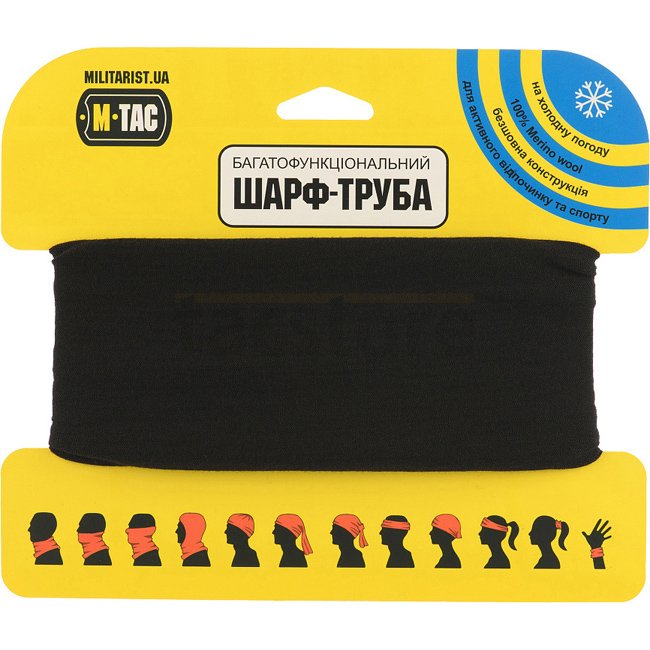 Écharpe tube M-Tac en laine mérinos - Noire. 100% laine mérinos. Excellentes performances thermiques et contrôle de l'humidité.