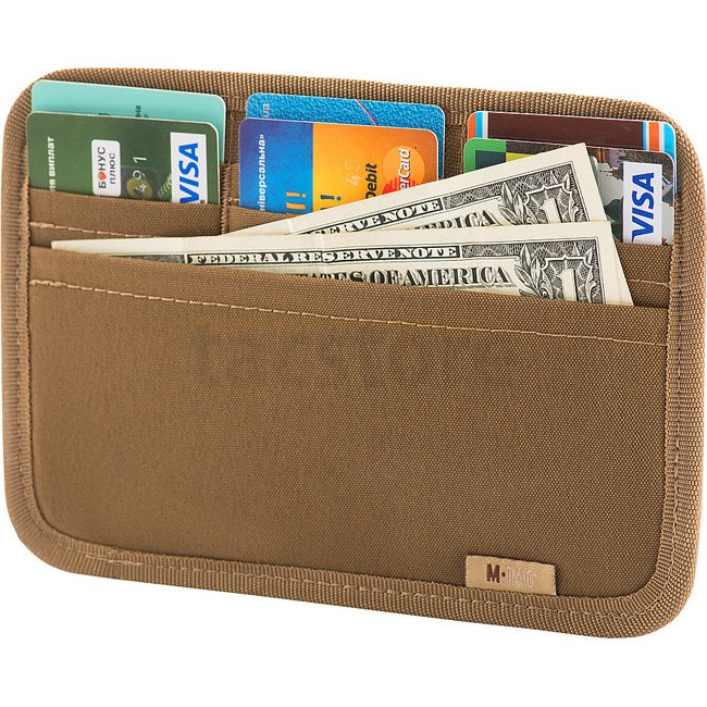 Portefeuille Modulaire M-Tac - Coyote : Portefeuille modulaire avec compartiments pour cartes, cartes de visite et argent. Compatible avec tout sac à dos ou sac doublé de Velcro ou de velours. Fabriqué en matériau Cordura 1000D, mesurant 19 x 13 cm.
