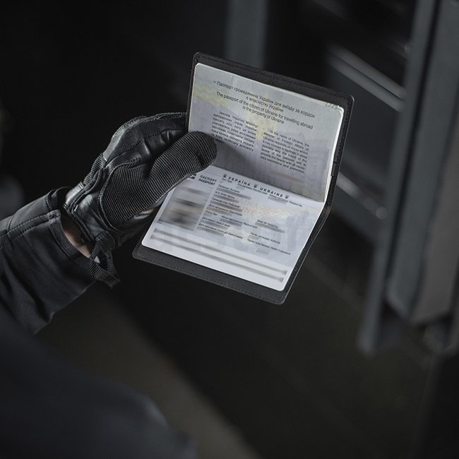 Fabriqué à partir d'un composite polymère moderne, qui présente une résistance à l'abrasion, une résistance et une durabilité exceptionnelles. La couverture avant a un lettrage vertical "Passport". Il y a des compartiments intérieurs pour les cartes en plastique.