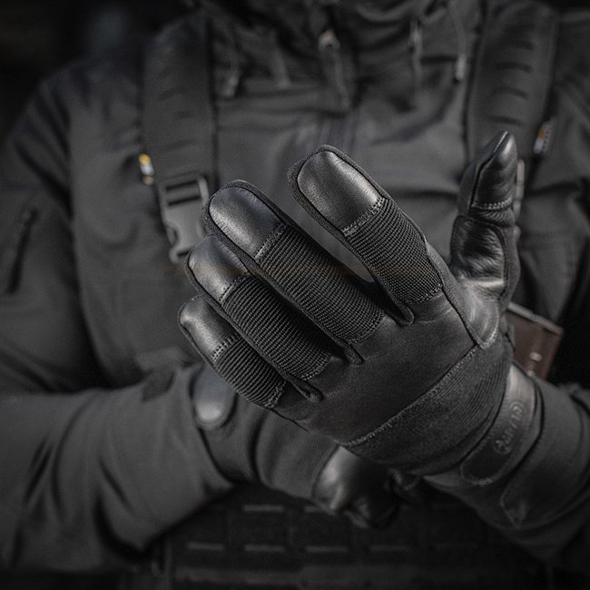 Gants de police M-Tac Gen.II en noir - taille XL. Construction en synthétique/cuir, zones actives rembourrées, fermetures à Velcro ajustables pour les forces de police.