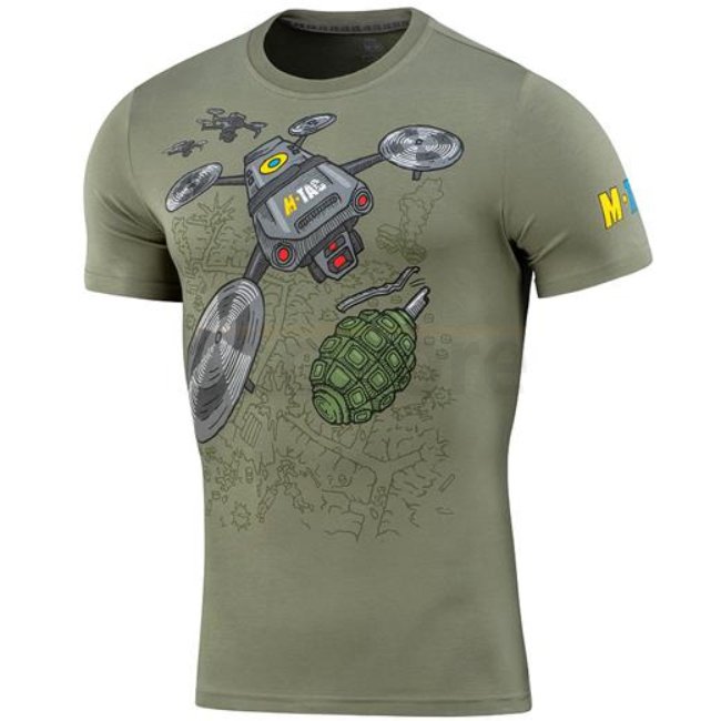 T-shirt M-Tac Quadcopter en Olive clair, taille S. Fabriqué à 93% de coton et 7% d'élasthanne, avec un poids de seulement 200 g. Mélange parfait de confort et de style !