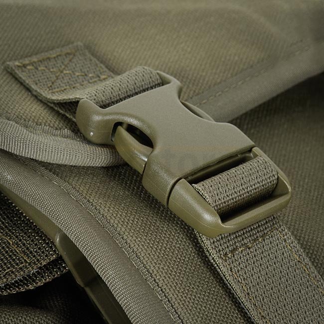 Le sac à dos se ferme hermétiquement grâce à trois rabats (deux sur les côtés et un sur le dessus) à la manière d'une enveloppe, tout en étant fixé avec des connecteurs fastex de chez Woojin. À l'intérieur, il y a 3 compartiments séparés pour les ogives RPG-7 et 3 poches pour les charges de poudre.
