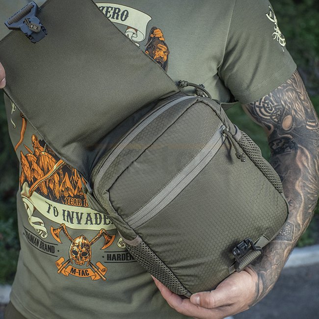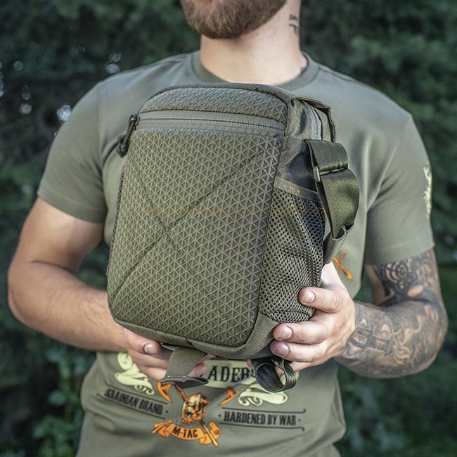 Des poches astucieusement disposées vous permettent de placer facilement votre kit EDC et de garder tous les éléments essentiels à portée de main. À l'intérieur du compartiment central, il y a deux poches: une ouverte et une en filet avec une fermeture éclair. Ce modèle dispose d'un compartiment pour un transport dissimulé avec un accès rapide. La paroi intérieure en velours vous permet de fixer des étuis ou d'autres inserts modulaires. Deux poches en filet sur les côtés sont idéales pour une bouteille d'eau ou un thermos.