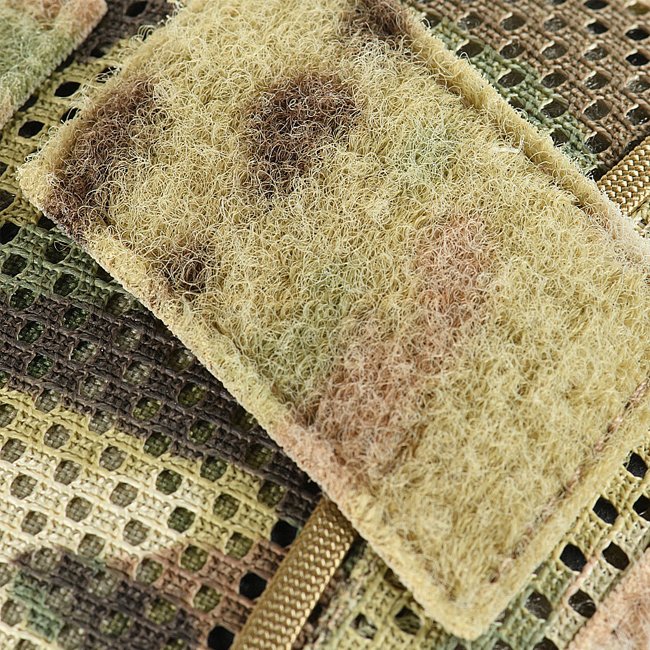 La housse se fixe facilement sur un casque et est équipée d'attaches velcro (sur les côtés, à l'arrière et sur le dessus) pour les cartes d'identité, les balises et les patchs divers. Des sangles spéciales le long de la housse permettent une fixation pratique des cordons ou un camouflage supplémentaire.