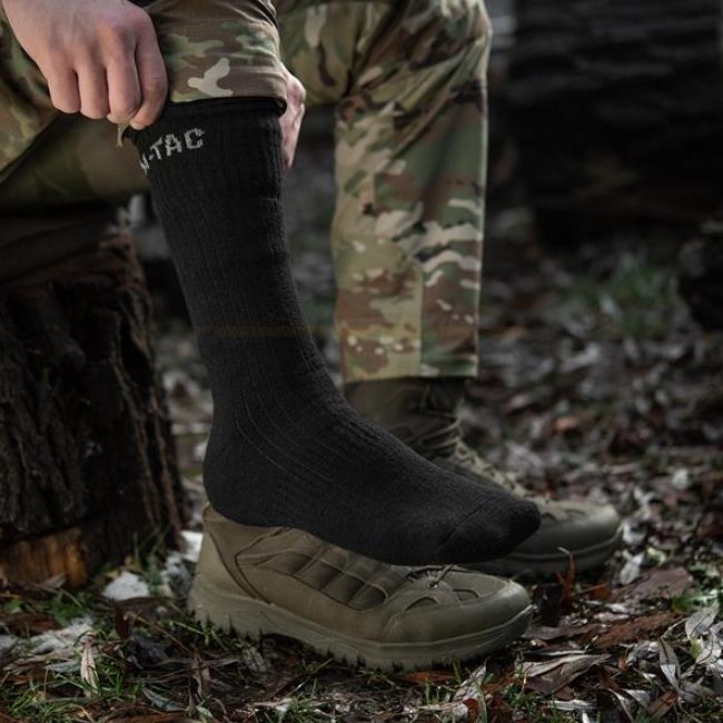 Chaussettes en laine d'hiver M-Tac en noir, taille 39-40. Fabriquées en laine mérinos, ces chaussettes sont un parfait mélange de chaleur et de confort, pesant seulement 40g.