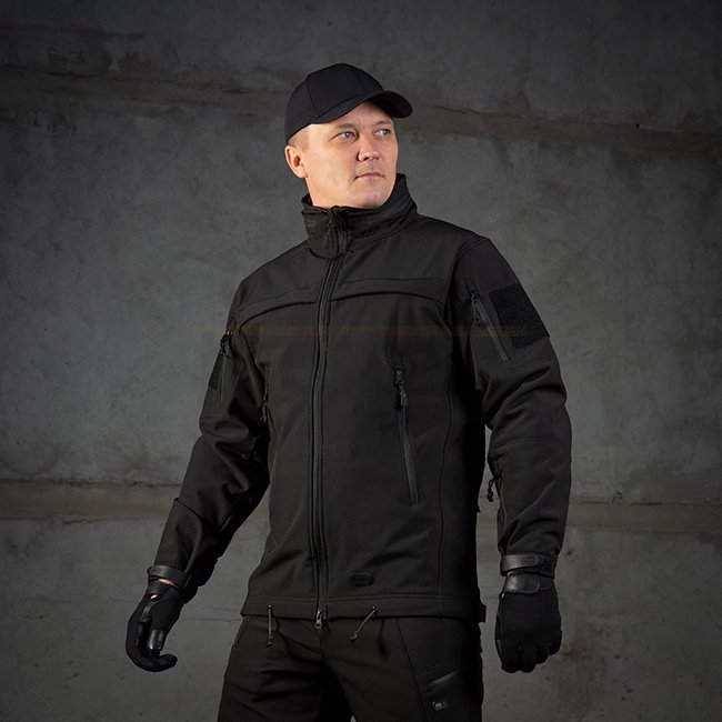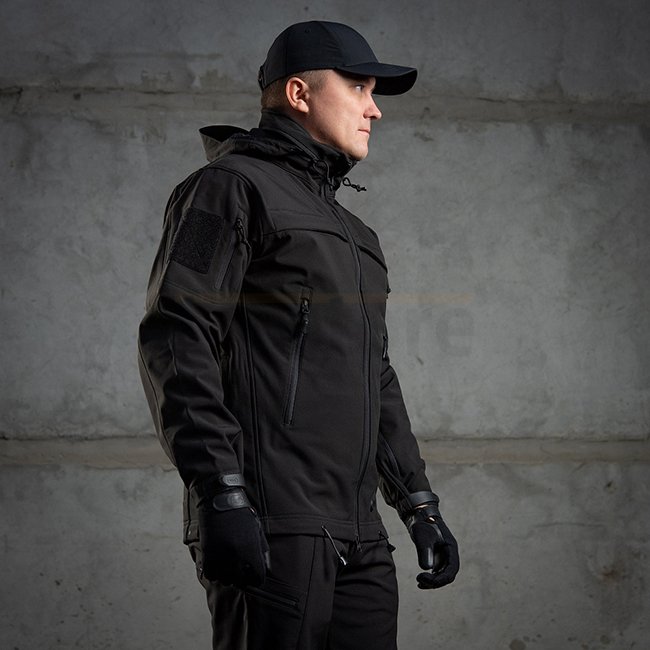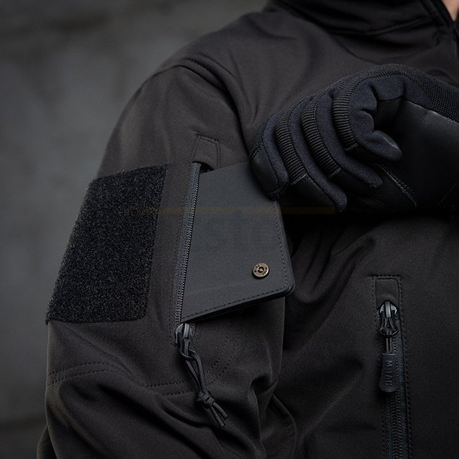 Veste de police Soft Shell M-Tac - Noir - M : Fabriquée en membrane en polyuréthane intercalée pour une protection contre les intempéries, avec une fine couche de polaire. Comprend 2 panneaux d'identification pour la personnalisation et un système d'ouver