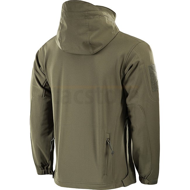 Veste de police Soft Shell M-Tac - Olive - M : Veste en soft shell protectrice en membrane de polyuréthane avec une couche en polaire. Comprend deux panneaux d'identification, un accès par les côtés et une protection contre les intempéries. Design léger e