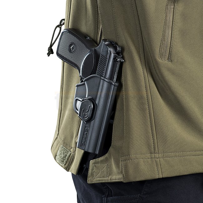 La veste Soft Shell est composée d'une membrane intercalaire en polyuréthane qui protège des intempéries. À l'intérieur, il a une fine couche de polaire. Il dispose de deux panneaux d'identification qui, selon la situation, peuvent être retirés ou rester cachés. Les panneaux vides peuvent être imprimés ou emproided. Un système d'ouverture latérale permet un accès rapide à une arme latéral.