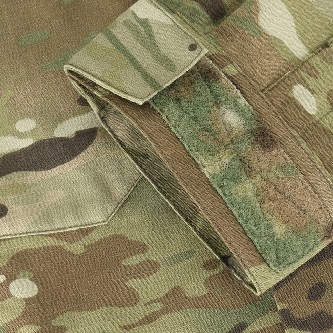 Fabriqué à partir d'un matériau léger US Nyco qui est environ trois fois plus résistant à la déchirure, 10 fois plus respirant et sèche plus rapidement que le tissu Nyco ordinaire. La veste a une coupe libre et des raccords de haute qualité. Fermeture par un zip central recouvert d'un rabat velcro. Sur le rabat se trouve un panneau velcro avec des fentes pour attacher des lunettes. Ce modèle est équipé de deux grandes poches poitrine, qui sont recouvertes d'un rabat. Sur les manches, il y a des poches cachées avec des entrées verticales pour un accès facile à leur contenu. Également sur la manche gauche, un compartiment supplémentaire pour la lumière chimique, les stylos, les crayons et les marqueurs est situé. Les poignets sont réglables avec du velcro. Les panneaux Velcro sur la poitrine et les bras sont conçus pour attacher des étiquettes et des écussons.