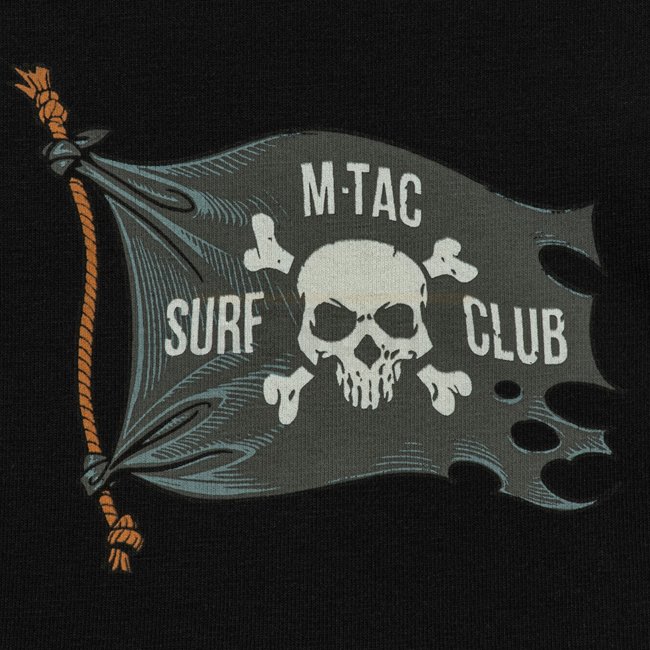 T-shirt M-Tac Surf Club en noir, taille L. Fabriqué en 93% coton et 7% élasthanne, pesant 190g.