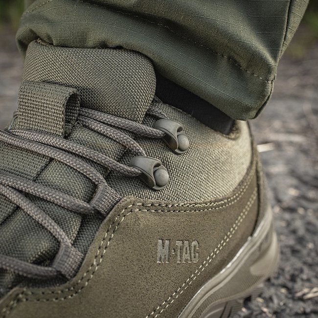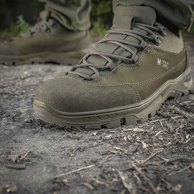 Baskets tactiques M-Tac Patrol R - Olive - 44 combinent cuir de qualité et matériaux synthétiques avec un embout renforcé pour la durabilité. Semelle absorbant les chocs et bas en caoutchouc à haute adhérence pour une utilisation prolongée.