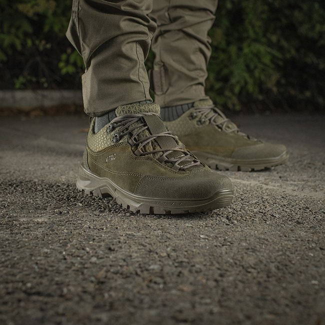 Baskets Tactiques M-Tac Patrol R Vent - Olive - 44 : Alliez abordabilité et qualité avec du cuir véritable, un orteil renforcé, une semelle en polyuréthane absorbant les chocs, et un fond en caoutchouc durable pour une durée de vie prolongée. Matériel : C