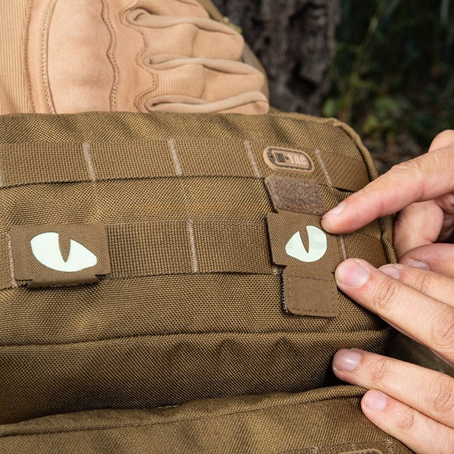 M-Tac Tiger Eyes Patch Découpe Laser - Coyote. Fabriqué en matériau lumineux qui brille dans l'obscurité. Cordura 500D. Dimensions : 40 x 25 mm (x2).