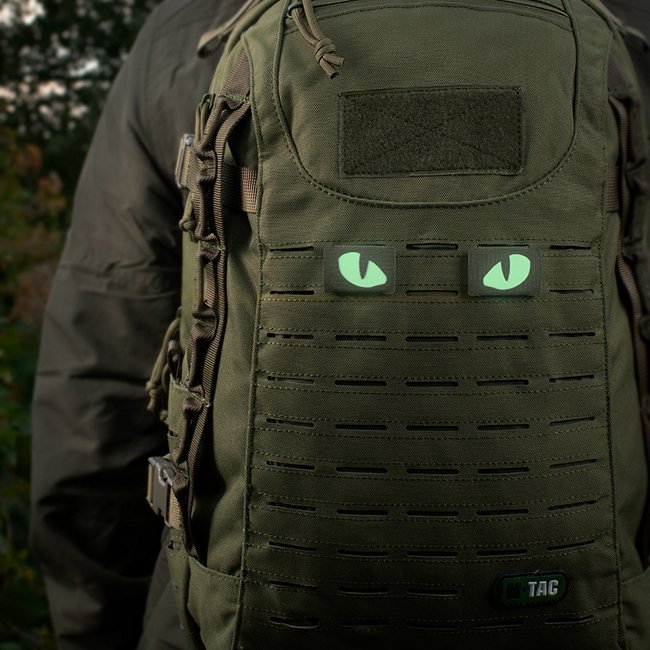 M-Tac Tiger Eyes Patch Découpe Laser - Vert Ranger : Yeux lumineux accumulant la lumière fabriqués en matériau Cordura 500D.