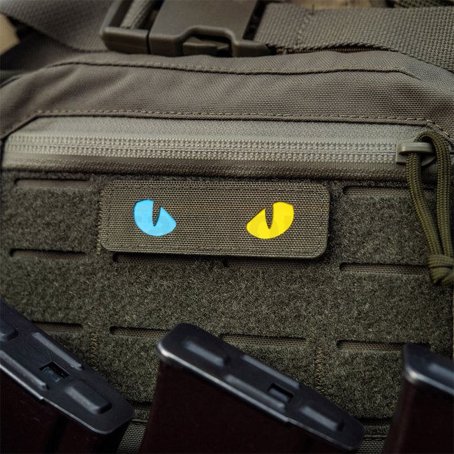 Patch Découpe Laser M-Tac UA Cat Eyes en couleur Ranger Green. Fabriqué en Cordura 500D résistant sur le devant et doté d'une surface de fixation à l'arrière. Dimensions 80 x 25 mm.